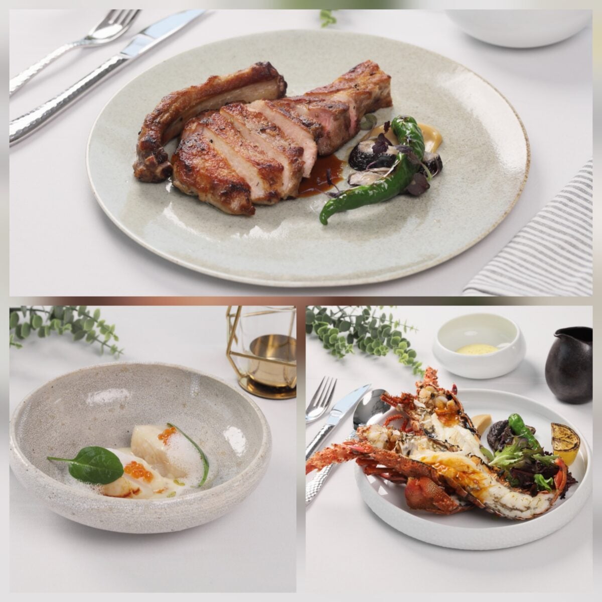 ▲「美國頂級戰斧豬排」外皮酥香、肉汁豐沛,豪邁多層次口感讓味蕾感受到深度的美味、「爐烤活龍蝦」外殼微酥、肉質鮮甜彈牙、份量十足,醬汁賦予料理更深層的風味表現、「香煎北海道干貝・白酒奶油醬・鮭魚卵」融合香煎干貝與鹹鮮飽滿鮭魚卵,堆疊海味層次。