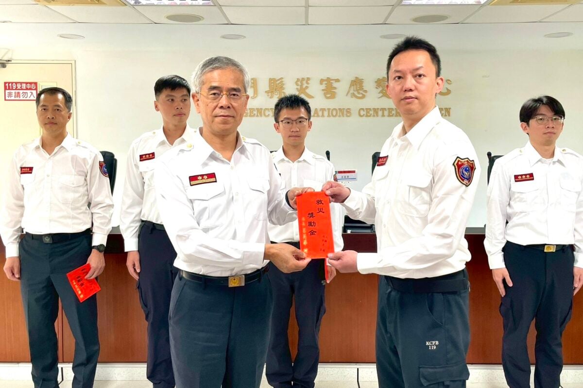 【記者 洪美滿/金門 報導】115年3月7日下午,金寧鄉榜林村上后垵發生的民宅火警,在消防局第一大隊正確指揮與同仁迅速應變、指揮中心精確引導下,成功救出受困二樓的75 歲民眾。消防局局長呂英華高度肯定第一線同仁展現的專業救災能力與英勇精神。為慰勉參與該次救災勤務的辛勞,局長呂英華於3月25日上午在消防局親自頒發慰勞金給當日執行救災同仁,對參與搶救的同仁表達感謝與嘉勉,現場氛圍專業且溫馨,有效提振團隊士氣。