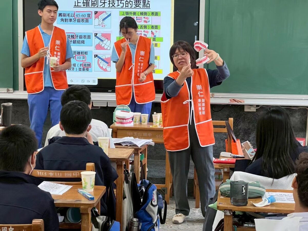 【記者 吳瑞興/嘉義縣 報導】為強化青少年口腔保健意識,崇仁醫護管理專科學校健康長照管理科攜手嘉義市玉山國中推動「口腔健康促進活動」,自3月16日起展開為期八場次的入校服務。活動由健長科教師黃瑜琛親自帶領學生深入校園,透過專業示範與互動教學,將正確刷牙技巧、牙線使用及口腔清潔輔具應用等知識轉化為具體行動。課堂中,玉山國中學生參與踴躍,不僅主動提問、即時演練,更在實作環節中展現高度專注與學習熱忱,顯著提升學習動機與健康意識,充分體現技職教育學用合一的實踐成果。