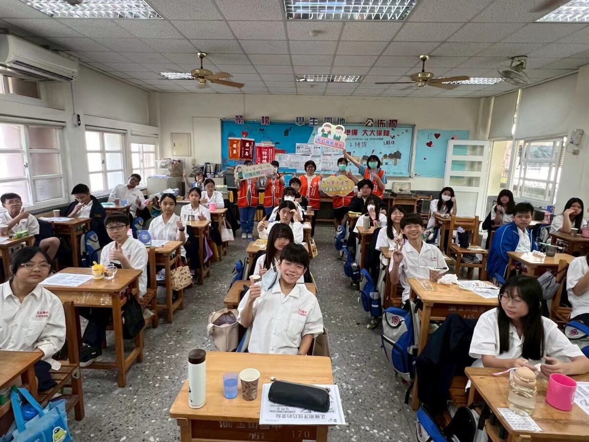 ▲玉山國中學生於課堂中熱情參與口腔衛教課程,透過實作與互動學習正確潔牙觀念,現場氣氛熱絡。