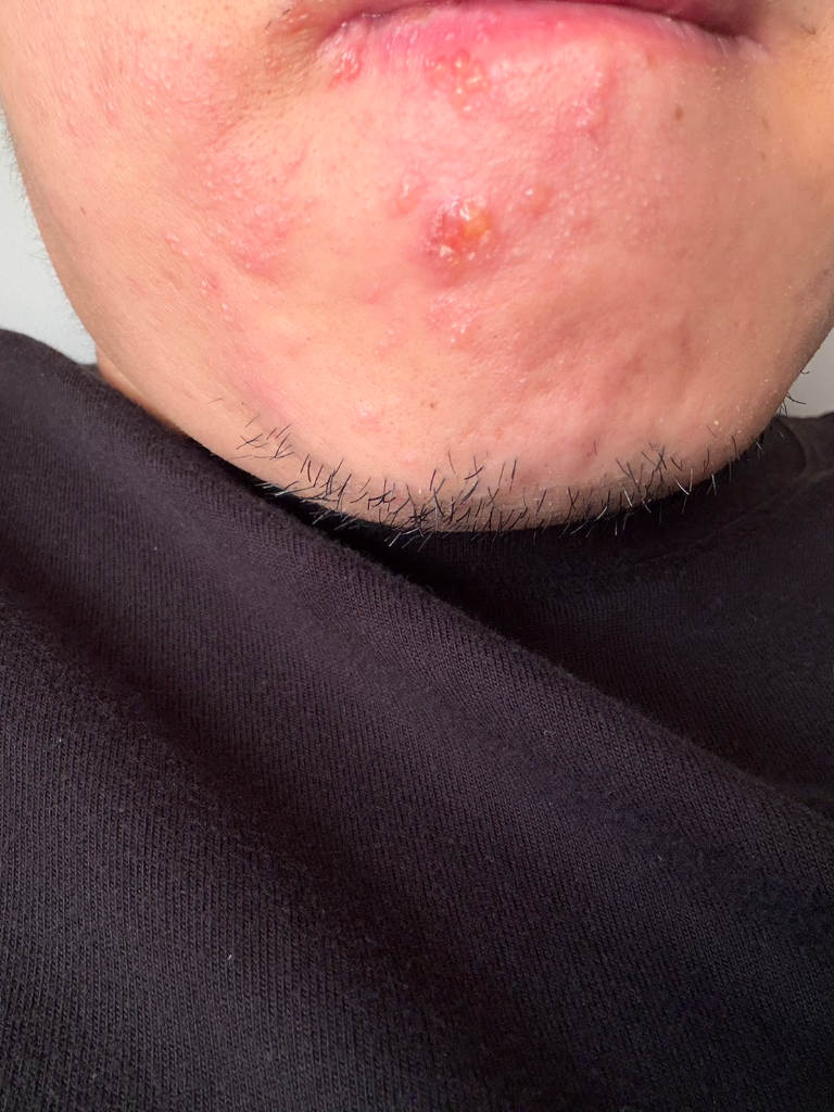 ▲ 患者帶狀皰疹侵犯部位在頭部,導致嘴唇、