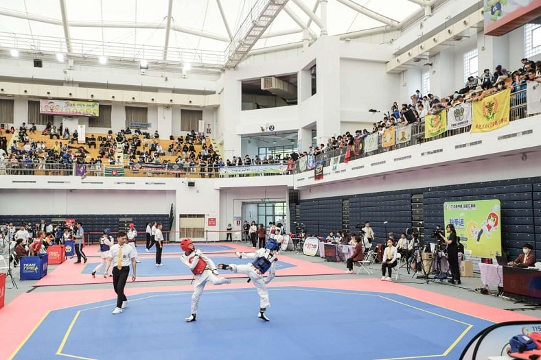每日早上8點進行抽磅與過磅程序,9點比賽正式開始,對打項目採電子護具與電子計分系統,今日賽事中各縣市選手全力以赴,攻守轉換迅速,展現跆拳道對打的爆發力與競技張力,考驗選手反應、戰術判斷與技術運用能力。