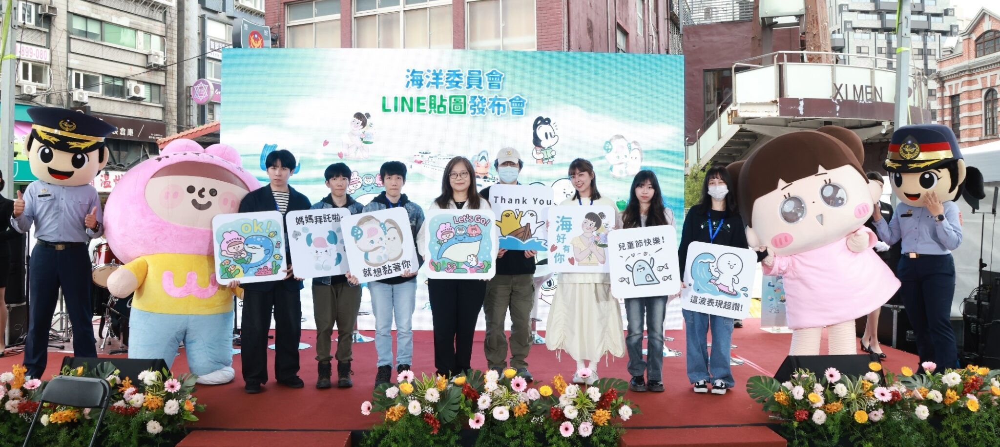 【記者羅伯特/綜合報導】海洋委員會28日下午於西門紅樓北廣場前舉辦「海洋主題LINE貼圖發布會暨粉絲見面會」,正式發布海洋主題LINE貼圖。活動吸引大批民眾熱情參與,現場不僅與插畫家近距離互動交流,人氣角色「啾啾妹」、「可愛大王」及海巡署人偶也驚喜現身與民眾合影,帶動氣氛。海洋委員會主任委員管碧玲更預告第二波「海洋母親節」貼圖將於4月14日上架,期待民眾完整收藏海洋主題LINE貼圖。