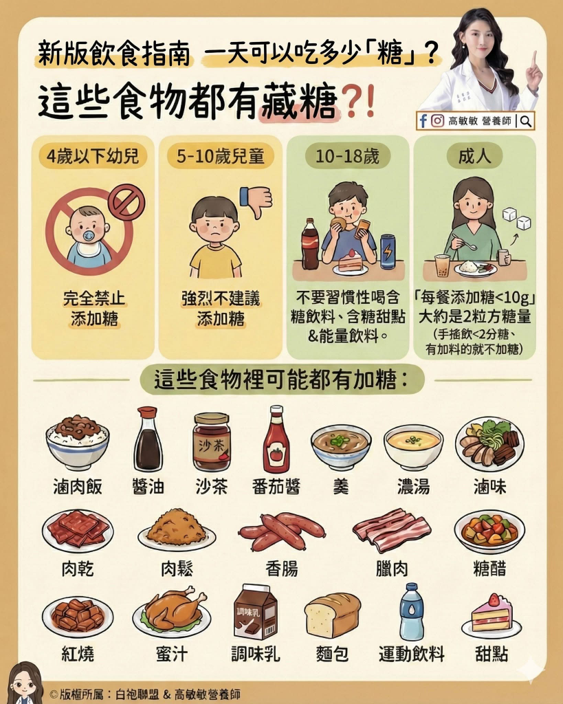在現代飲食中,糖的攝取量常常被忽視,許多人誤以為只有甜點才含糖,但事實上,糖常常隱藏在我們每天的正餐中,無形中累積的糖分可能超過身體能負擔的量。新版飲食指南為我們提供了不同年齡層的「添加糖」攝取建議,讓我們一起來了解如何在日常生活中更健康地選擇食物。
