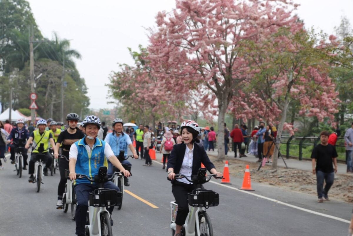 參山處長曹忠猷表示,活動主要推動騎旅風氣,希望遊客可以利用現地共享單車進行小鎮旅遊。這次以「鐵道文化×田園風景×小鎮慢遊」為核心設計,全長約12公里、騎乘時間約3小時,路線平緩友善,適合各年齡層輕鬆參與。沿途串聯二水車站、二八水水公園與二水老街等在地景點,其中最吸睛亮點即為近期社群爆紅的「花旗木鐵道」,粉紅花海沿著集集線綻放,火車穿梭期間形成限定版「移動式打卡景觀」,已成為中臺灣春季最具話題的旅遊場景之一。