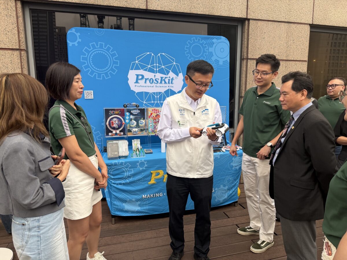 ▲新北市教育局局長張明文親自到現場體驗寶工Pro’sKit科學玩具。