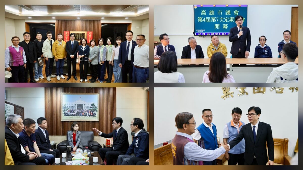 【記者 王苡蘋/高雄 報導】高雄市議會第4屆第7次定期大會今(30)日開幕,市長陳其邁率領市府團隊前往議會,逐一向議長康裕成、副議長曾俊傑、國民黨團、無黨團結聯盟及民進黨團拜會致意,並針對城市轉型、城鄉建設、民生、水情等議題交流討論,盼府會攜手合作,共同促進高雄城市轉型。