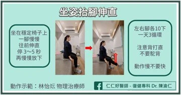 2. 坐姿抬腳伸直(安全型膝蓋訓練)
