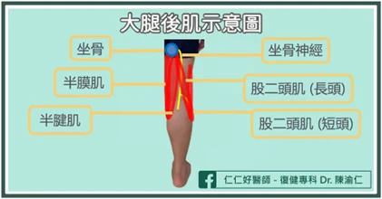 膝蓋周邊的重要肌群,包括前側的股四頭肌、後側的大腿後肌及膕肌,因其在膝關節周邊,若有拉傷或撕裂,會感覺膝蓋脹痛,但原因不是在膝關節內,而是關節外。正確診斷有賴於醫療人員的專業檢測及超音波檢查。