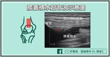 膝關節退化發炎、或是拉傷扭傷挫傷都可能造成膝關節積水,而常見的X光並無法檢查出關節積水,肌肉骨骼超音波才能即時確認是否有積水。但關節積水只是一個最終結果,更重要的是確認積水是退化造成,還是膝關節的其他重要結構,包括內、外半月板,內、外側副韌帶,及前、後十字韌帶等軟組織是否有撕裂甚至斷裂。