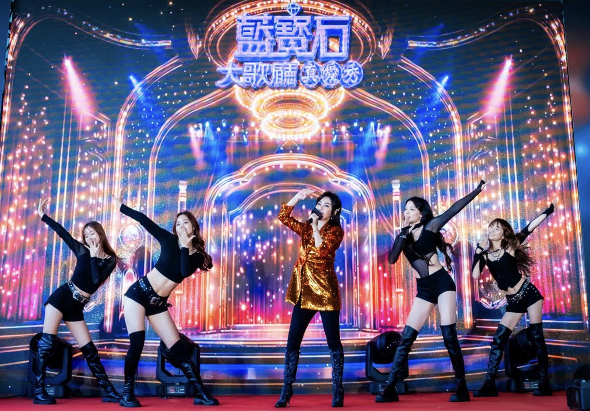 首映會現場用心打造復刻秀場主題市集,再現昔日歌廳風華。活動入口鋪設紅地毯配上燈光效果,營造宛如踏上星光大道般的體驗,並設置秀場舞台,展示當年表演道具與華麗戲服,開放民眾試穿拍照打卡;同時規劃多個互動體驗,包括卡拉OK讓民眾一展歌喉、挑戰復古彈珠台抽首映會入場門票,各式活動吸引大批民眾瘋搶體驗。此外,現場也集結25家特色店家進駐,讓觀眾邊逛邊吃、邊拍邊玩;活動期間完成套色印章集章,還可獲得限量「藍寶石紀念明信片」,無法現場參與的民眾也可以在