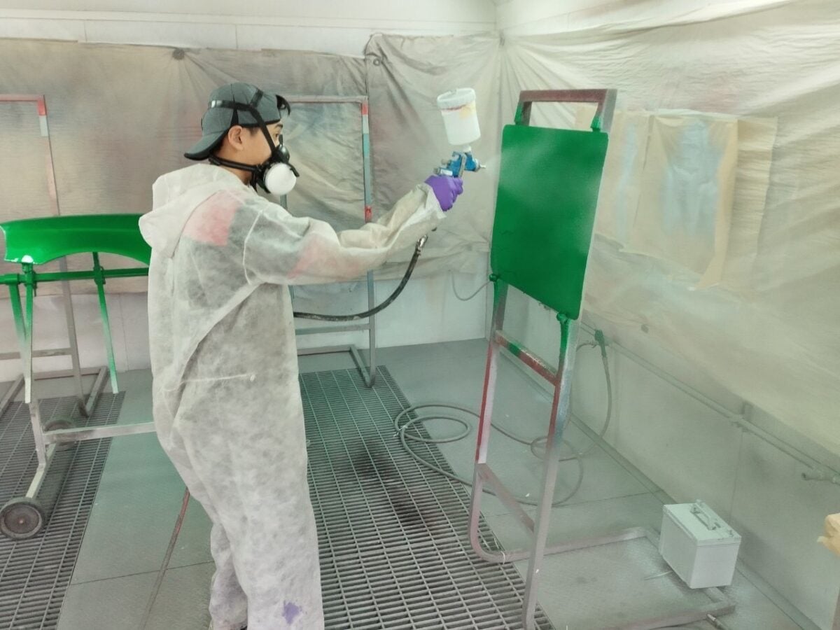 ▲吳哲勛同學在汽車噴漆實作畫面。