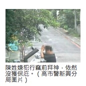 【on.cc東網專訊】 高雄1名43歲陳姓無業男,行竊前先向神明拜拜,以為「有拜有保庇」,偷完還打電話恐嚇被害人匯款給他。警方上門逮人時,他竟打110稱「很多警察要抓 他」,還上臉書求援卻沒人理會,被警方破門逮人。警方表示,陳男又偷又恐嚇,行徑囂張惡劣,依竊盜及恐嚇取財罪送辦。