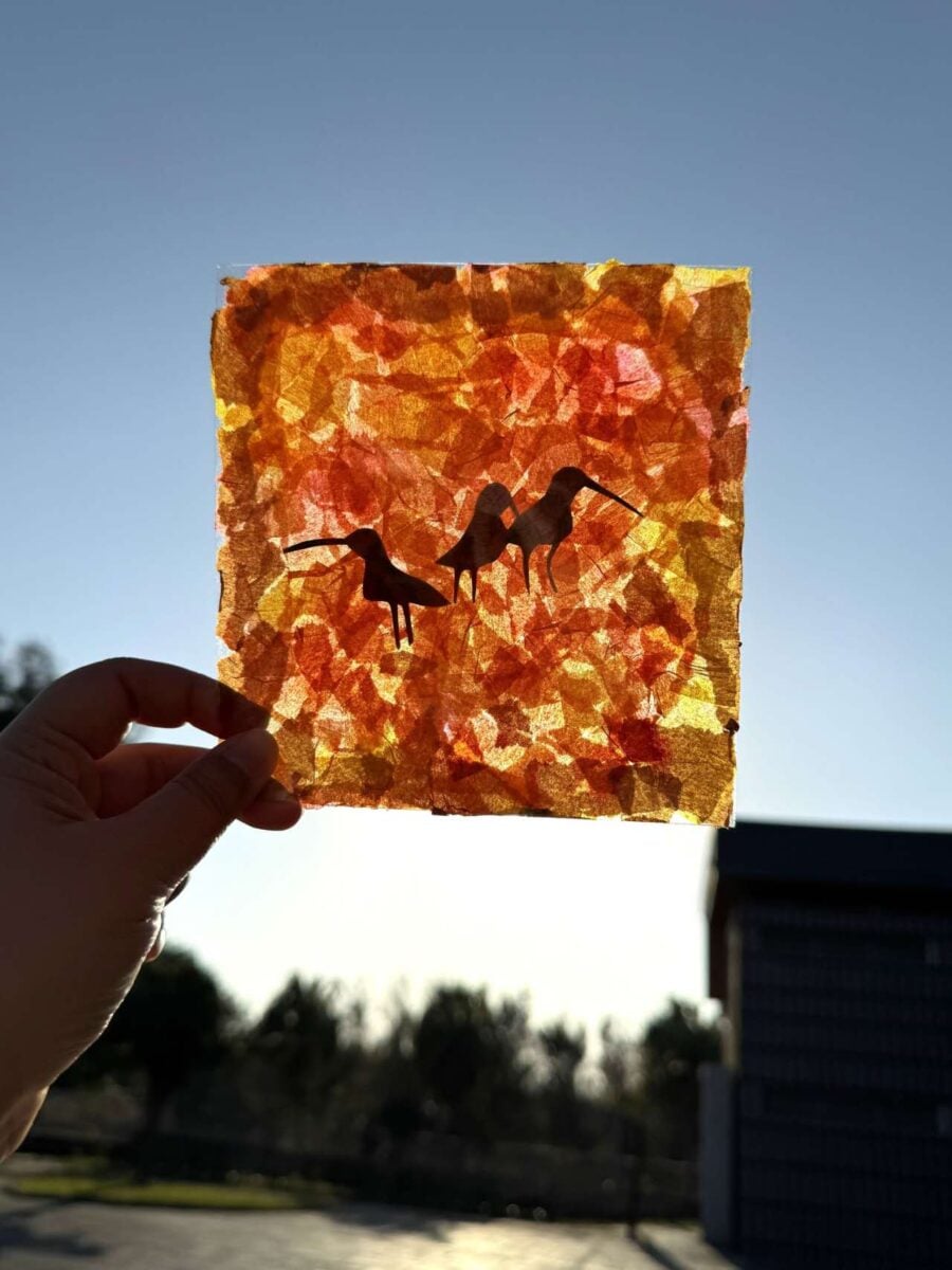 本次活動以鰲鼓濕地常見的趣味景象「鷺鷥等公車」為主題。園區堤防護欄常可見鷺鷥成群站立休息,整齊排列的畫面宛如等候公車的乘客,此種特殊景觀因此被鳥友形容為「鷺鷥等公車」。活動中,參與者將利用剪影方式呈現鷺鷥站立欄杆的畫面,再以彩色皺紋紙裝飾背景,製作出具有春日意象的光影卡片。作品完成後舉向光線,卡片中的色彩會呈現類似彩繪玻璃的透光效果,讓濕地的光影與色彩在作品中展現。