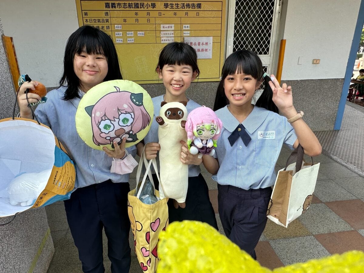 今年活動最大亮點「玩出好世界-學生集點趣」,是學校自本學期開學即啟動、為期一個月的共好行動計畫。從「與自己共好、與班級共好、與校園共好」三大向度出發,引導學生在日常生活中實踐關懷、服務與責任,透過點數累積將良善行動轉化為正向回饋。完成任務後,學生可參與由家長會與志工團攜手打造的「共好童玩樂園」,體驗彈珠台、套圈圈及九宮格投球等古早味童玩,讓「共好」連結「共玩」,在遊戲中感受努力後的成就與喜悅。六年級模範兒童彭楺崴同學分享:「透過幫助他人來換取機會,讓獎勵變得更有意義,『共好』就是大家一起享受互助的快樂!」校園裡到處是開心的畫面,104卓家萱同學說:「我今天升旗時拿到模範兒童獎狀,上面還有和老師及校長的合照,之後又去逛公益市集,買了好多我喜歡的東西,真開心!」同一班的黃柏寧同學也說:「這次我有集點到三次玩遊戲機會,平常沒有去夜市玩這些遊戲,今天一次玩了三種,還有拿到小禮物,真的很幸福!201康哲維說: 「今天學校舉辦兒童節活動-「公益市集」,我是小老闆,我很努力叫賣,也有拿到志航專屬的兒童節禮物「夾心餅乾」,太開心了!」