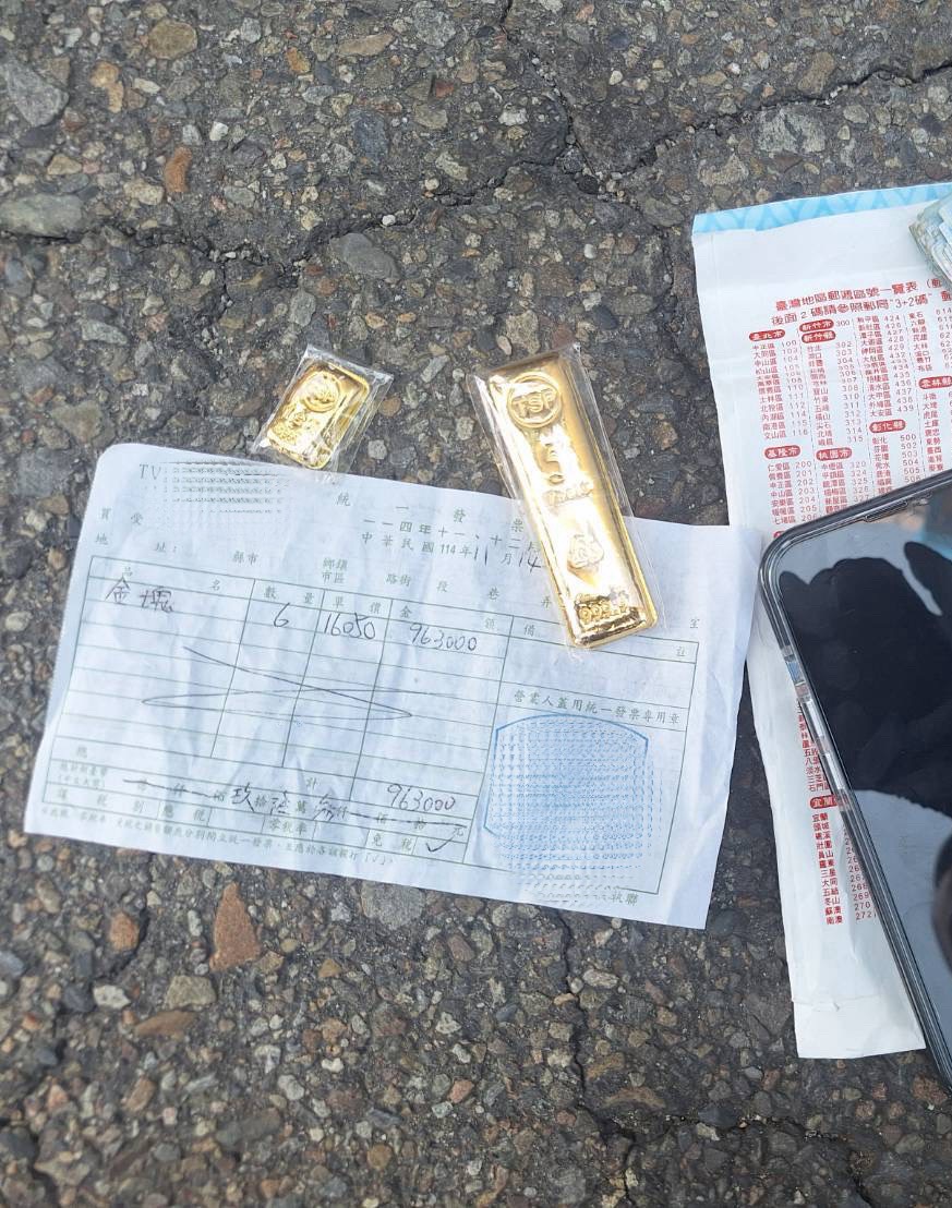 刑事警察大隊掌握線索後,鎖定該集團用於收款的車輛,連日跟監蒐證,終於在張姓車手交付黃金給20歲何姓「收水」成員時,一舉上前查緝,當場查扣黃金與相關收據,成功攔阻詐騙金流。