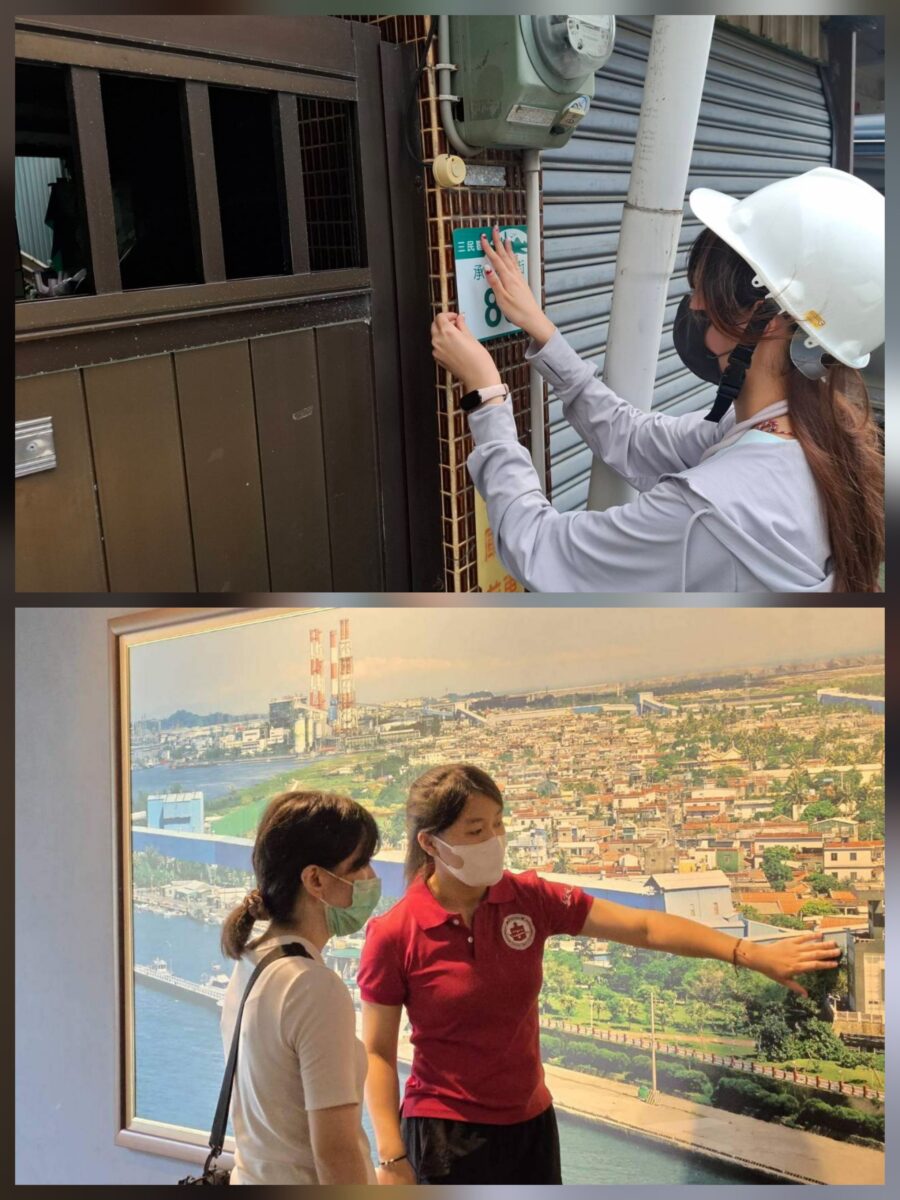 ▲去年參加暑期工讀的學生,配合三民區戶政事務所更新區里門牌、去年參加暑期工讀的學生(右),於紅毛港文化園區展示館大圖前向日本遊客進行導覽說明。