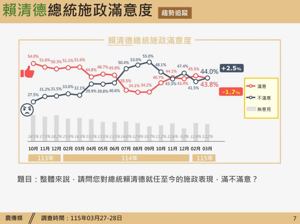賴清德施政滿意度追蹤。(震傳媒提供)