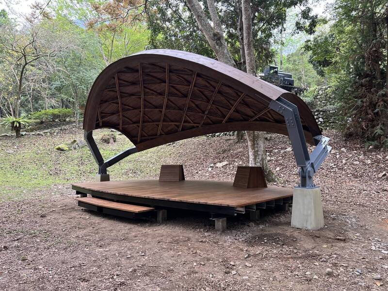 「殼之構」由設計團隊運用彈性網殼技術,透過數位模擬與現場構築,將原本平面的竹材網格轉化為具有強度與穩定性的立體結構,整合建築設計與工程技術,打造兼具遮蔭、休憩與環境體驗功能的開放空間,被視為今年清明連假必訪的森林美學新地標。