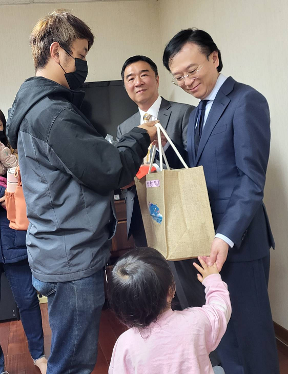 ▲法務部保護司洪信旭司長(中)及士林地檢署王以文檢察長(右1),關懷慰問清寒更生人,除讓其感受社會溫暖外,更希望能感化並鼓勵更生人重返社會。