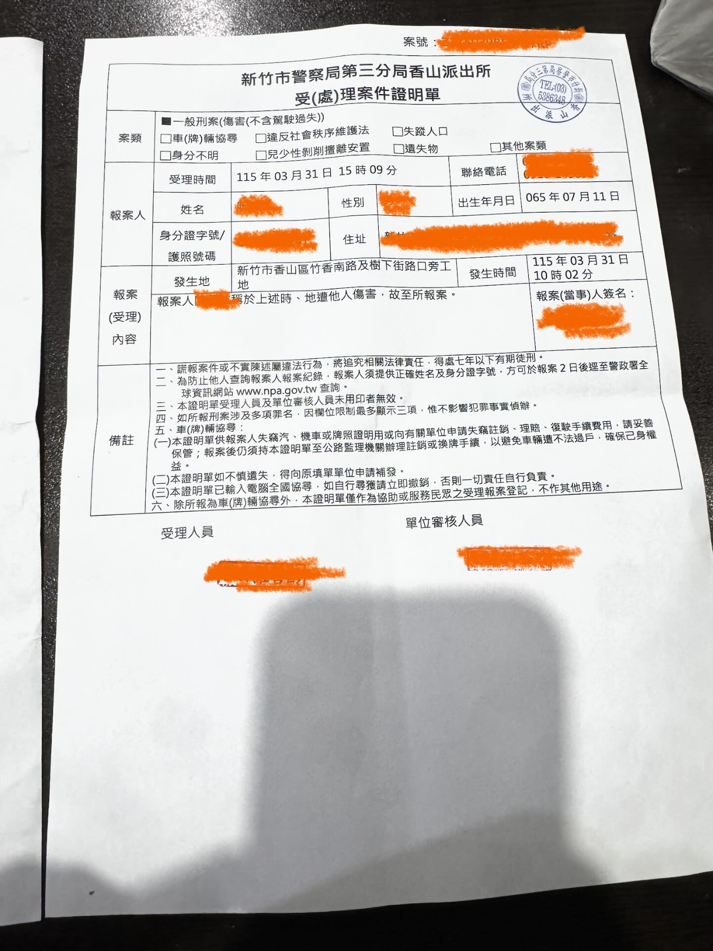 新竹市警三分局表示,有關本案該分局香山派出所已依規受理被害人報案,後續將通知相關涉案人到案說明,並移請新竹地檢署接續偵辦。