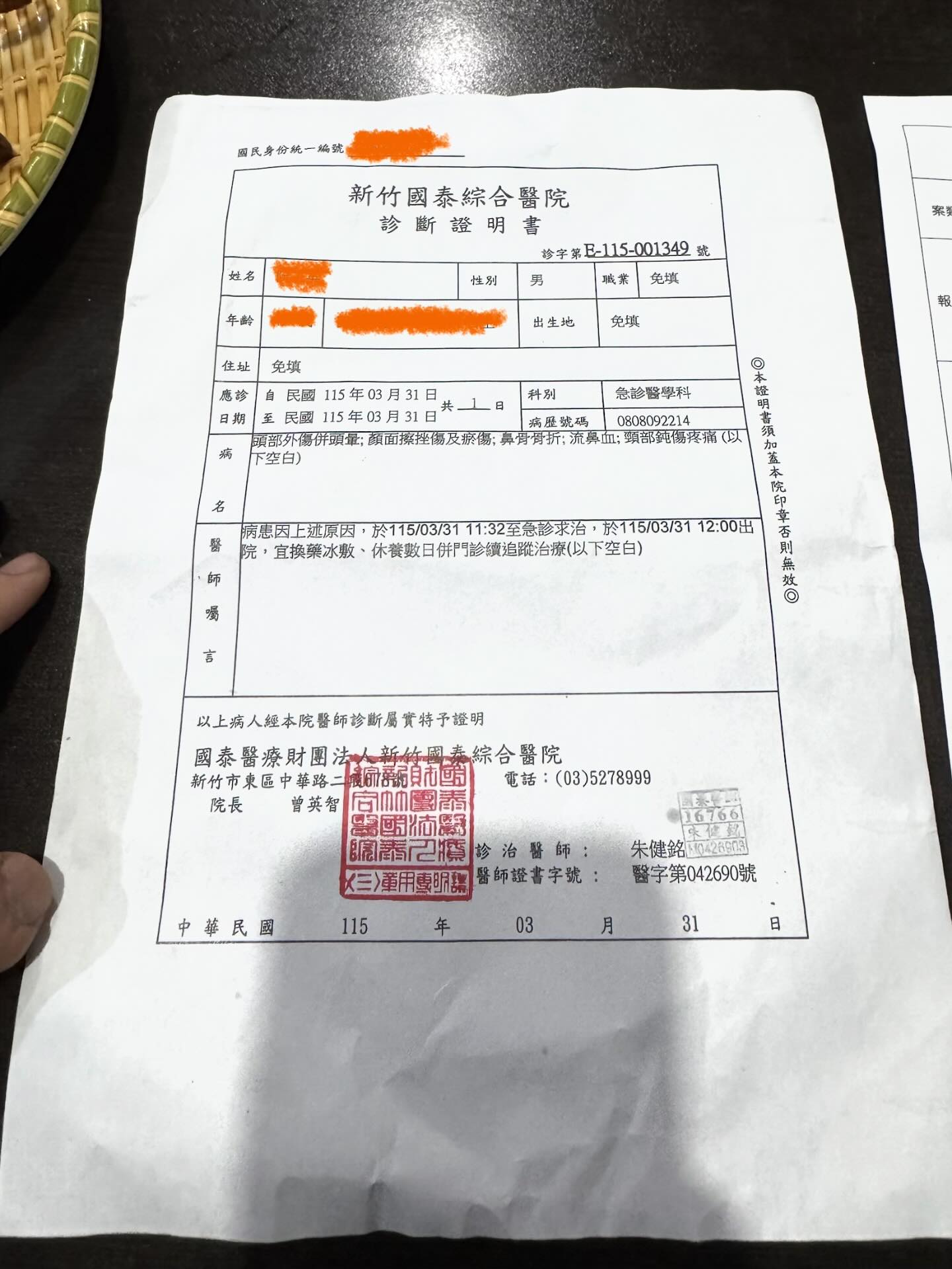 送餐男子到醫院驗傷。翻攝畫面