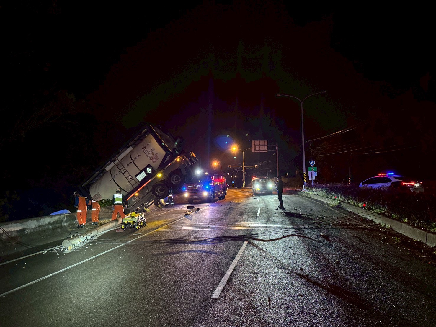 【Lai傳媒、記者爆料網/周庭慶/苗栗報導】苗栗市今(1)日發生槽車撞擊護欄事故!該車有將近半個車身衝過護欄險些墜落路旁,岌岌可危,消防隊緊急到場將駕駛救出送醫,全案苗栗分局調查處理中。