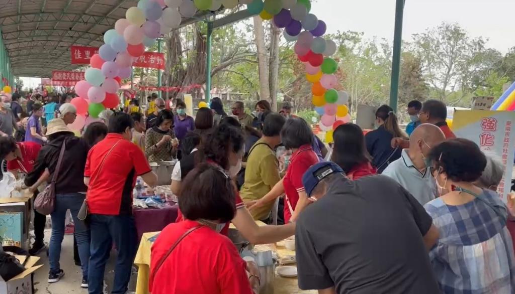 本次活動延續歷年深受歡迎家慶園遊會,設置多個特色攤位,許多單位與善心人士熱情支持,提供各式美味又免費食物,讓長輩們在園區內邊逛邊吃,享受熱鬧市集般氣氛,包括新光人壽逢甲家族提供好吃燉飯跟炒麵、陸海空軍相互關懷協會提供麻油雞米糕、彰化農場設攤共襄盛舉;任慧明慷慨提供辣椒罐、地瓜與茶葉蛋。