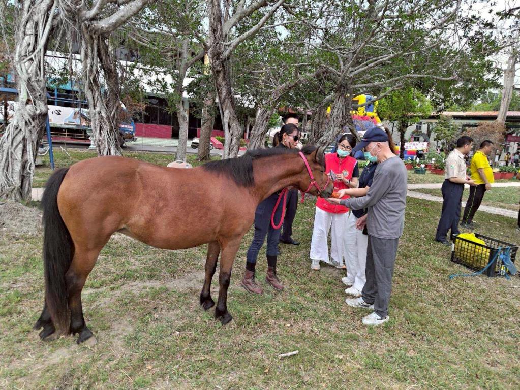 此外,橋頭馬術中心李宜珍理事長也帶來2匹馬匹,讓長輩與來賓體驗騎馬活動。許多長輩開心表示,能近距離接觸馬匹十分難得。