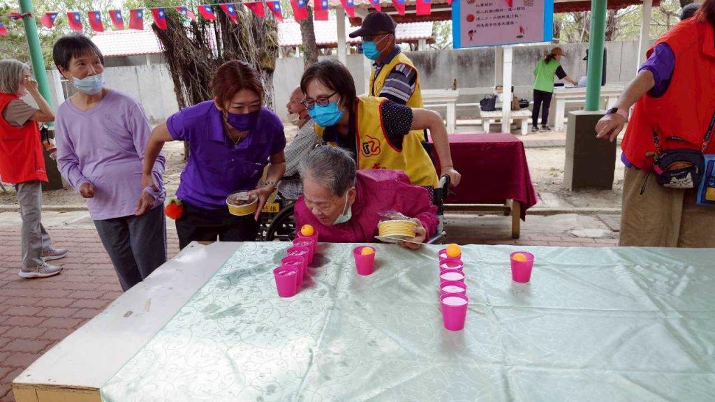 榮家說明,本次家慶活動規劃住民才藝競賽暨闖關活動,讓長輩們透過趣味遊戲動動手、動動腦,展現活力與團隊精神;闖關內容包含「我是天才小釣手」、「乒乓球吹吹樂」、「衛生紙捲捲捲」、「誰是滾球王」、「灌籃高手」等5項趣味關卡,讓坐輪椅長輩也能體驗益智遊戲,長輩在工作人員及志工陪伴與鼓勵下逐關挑戰,只要成功完成五關即可兌換乖乖零食,許多長輩玩得不亦樂乎,現場加油聲與笑聲不斷,氣氛十分熱烈。
