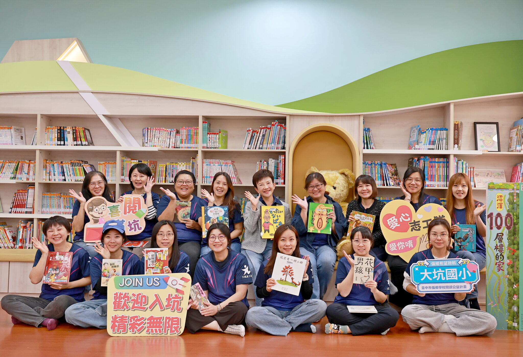 市立圖書館神岡分館、市立圖書館東區分館、市立圖書館大里分館、北屯區大坑國民小學花現喜閱志工隊、北區立人國小愛閱志工隊、北區太平國小愛閱特工隊及后里區育英國民小學愛閱志工隊等7個團體,則榮獲「閱讀推手團體獎」殊榮。