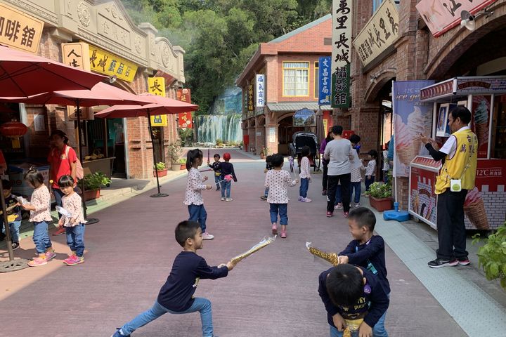 除了歷史場景,園區更是網紅必訪的打卡勝地。由林務局長歷時十年打造的電影老街,結合新娘房、布莊、牢房等場景,搭配天使之翼、許願鑼等夢幻設計,讓遊客能拍出穿越古今的大片。園區還提供免費古裝體驗,讓孩子化身小皇帝、格格或學士,增添趣味。