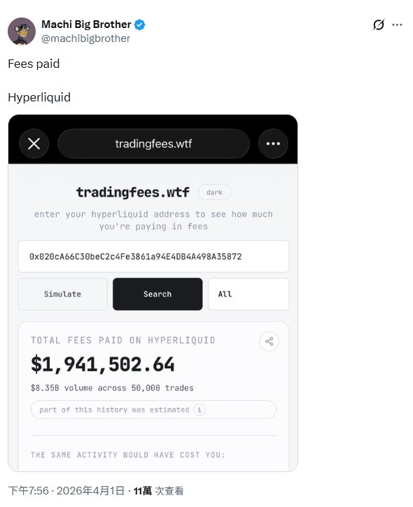 【Lai傳媒、記者爆料網/王傳文/綜合報導】「麻吉大哥」黃立成近期頻頻傳出面臨清算風險,再度成為網友關注焦點。他日前在社群平台X公開一張交易後台截圖,揭露自己在高頻交易平台的驚人操作規模,累計支付手續費已逼近200萬美元(約新台幣6400萬元),震撼網路。