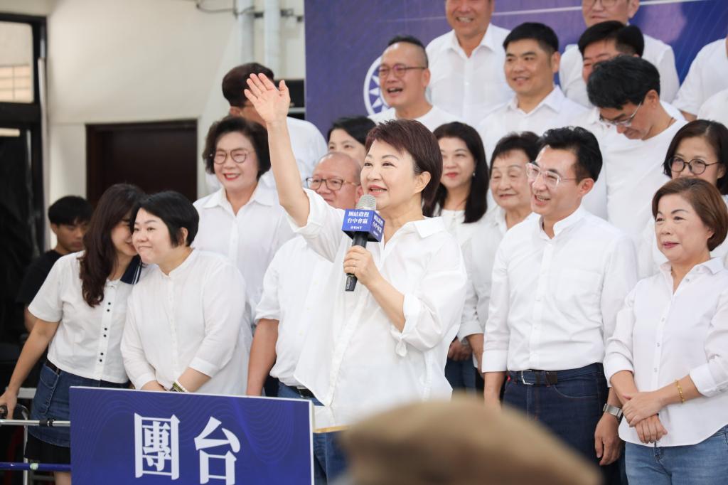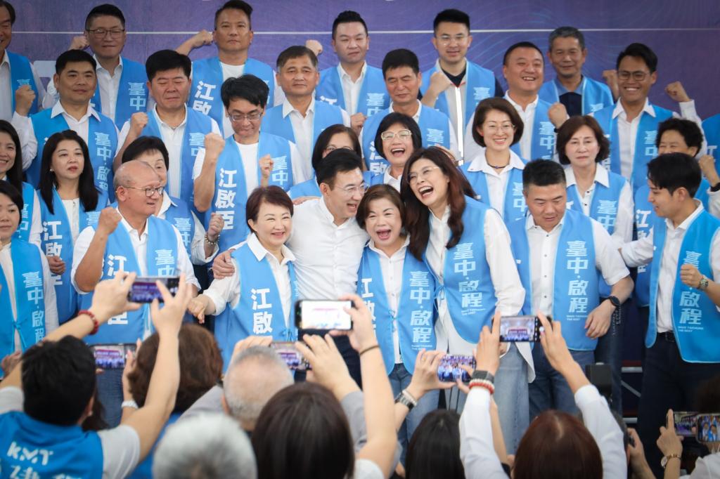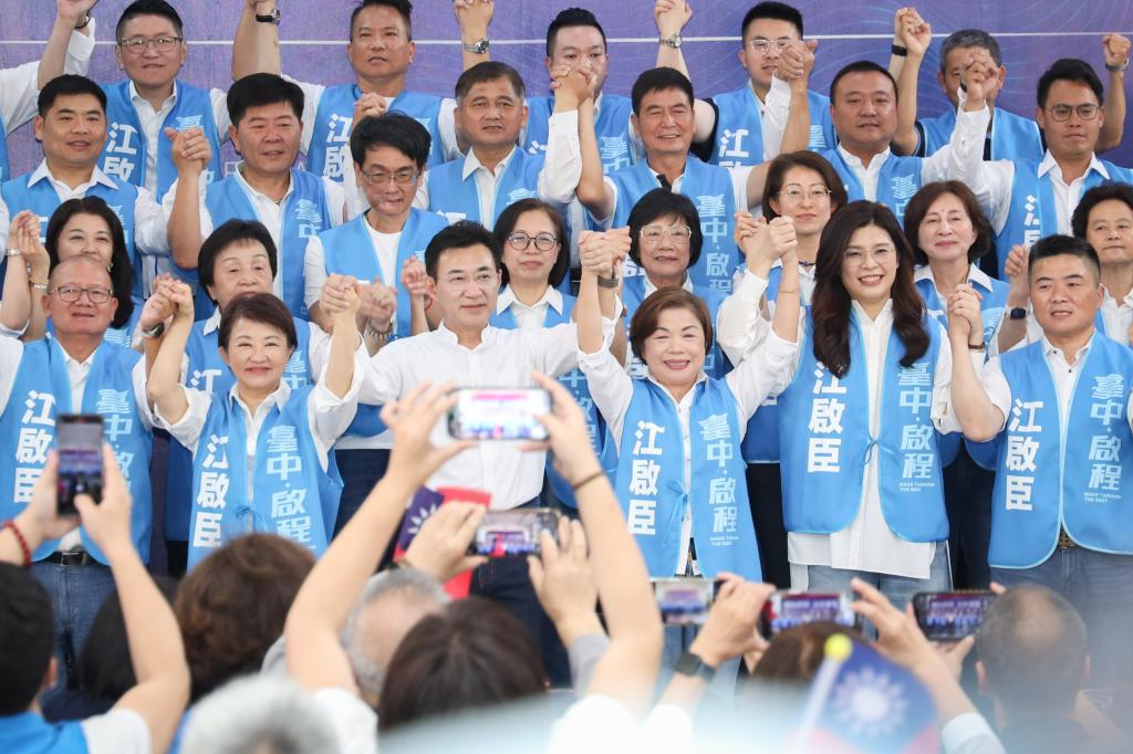 (記者張亞痕/台中報導)國民黨臺中市長初選結果出爐,由立委江啟臣勝出。臺中市長盧秀燕今(3)日號召黨籍立法委員、市議員舉行「團結啟程、台中會贏」誓師大會,國民黨主席鄭麗文亦南下出席,展現藍營整合完成、全力迎戰選舉的態勢。