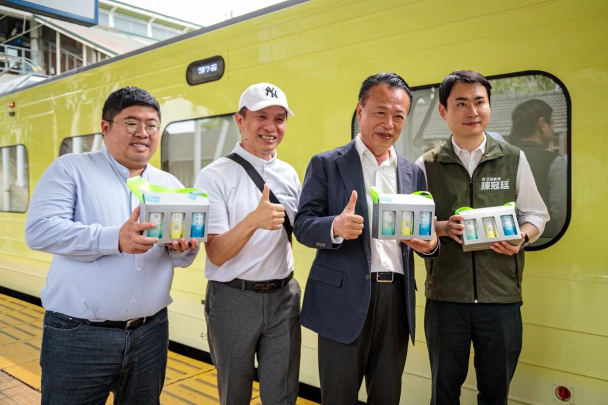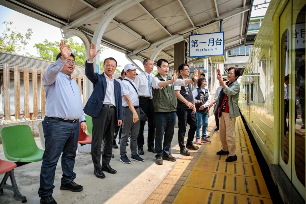 圖:台鐵最美山系觀光列車「山嵐號」西半部路線於今3日首航,嘉義縣長翁章梁在大林火車站迎接首批貴賓,當山嵐號緩緩靠站,旅客由「大林慢城發展協會」專業導覽團隊帶領,展開一場沉浸式的小鎮旅行。(記者吳瑞興翻攝)