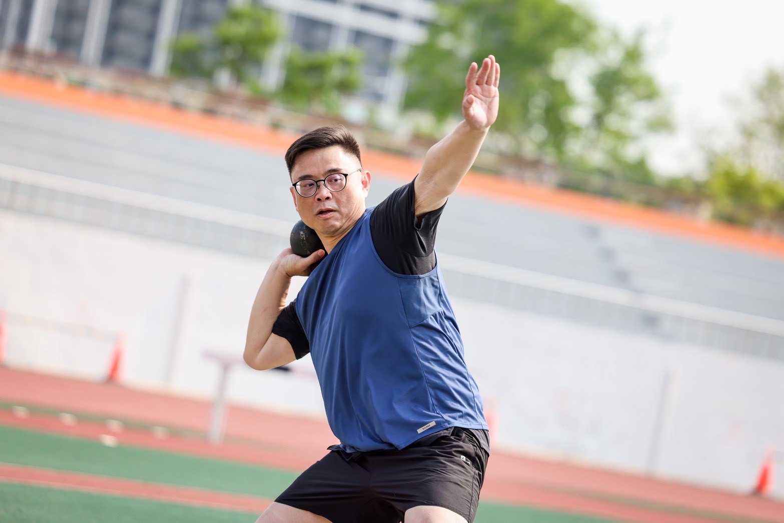 ↑圖說:賴瑞隆以過去鉛球選手身分親自示範標準動作,展現紮實基本功,最終順利拿下勝利。(圖片來源:賴瑞隆辦公室提供)