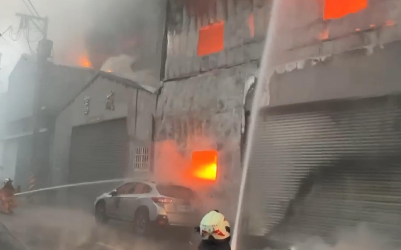 新竹鐵皮塑膠工廠火警火勢兇猛。翻攝畫面