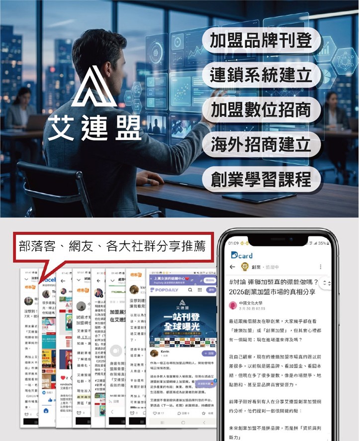 專注於創業資訊整合與加盟媒合的平台艾連盟創業加盟網表示,未來的加盟市場競爭將不再只是品牌規模的競賽,而是資訊、數據與創業教育的競爭。只要中小品牌能夠掌握市場定位並善用數位工具,仍然有機會在加盟市場中以小博大。