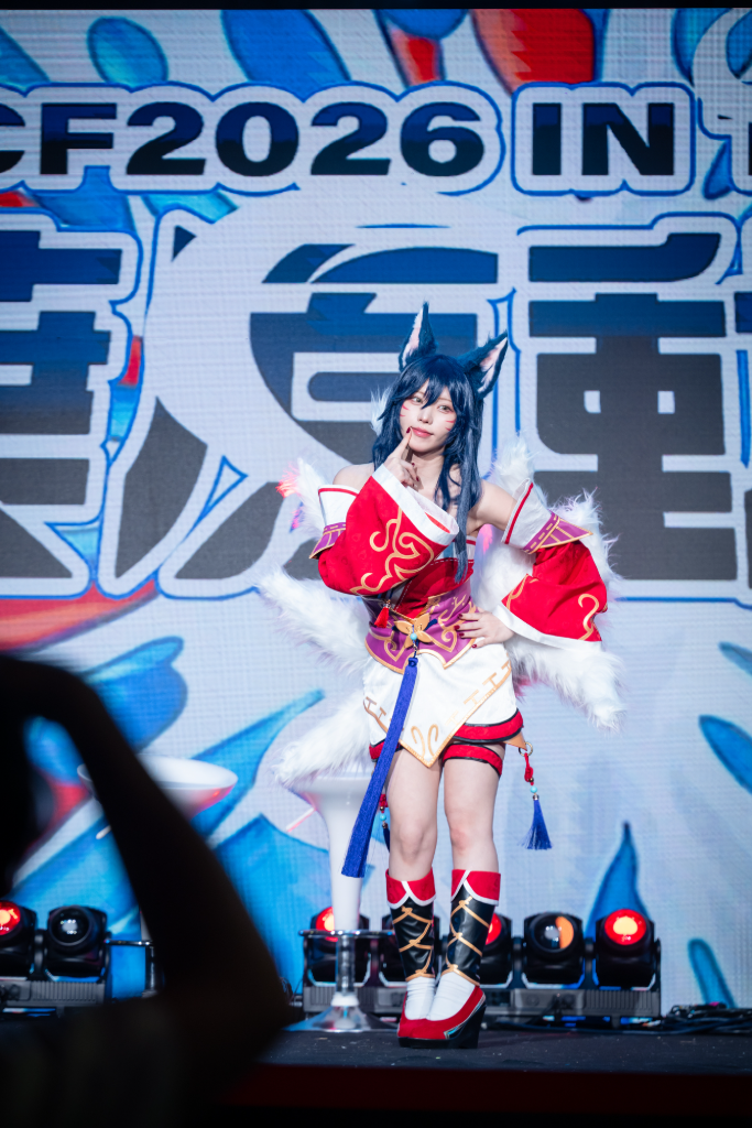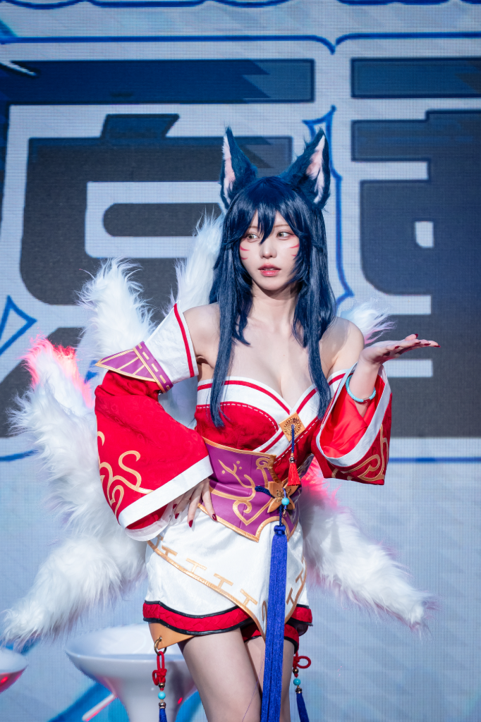 堅持任何工作的妝髮造型都要自己來的Enako,以「英雄聯盟」冠軍角色Ahri(阿璃)的角色現身,一出場先以中文打招呼:「「你好,我是Enako,請多多指教。」她特別介紹今天造型的重點:「就是後面毛茸茸的尾巴,直到上台前都還在梳理調整。」