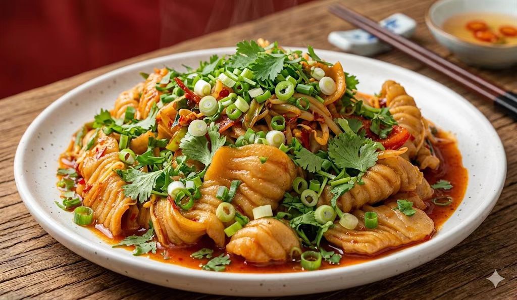 最地道的吃法是撕成小块,蘸着中间的小菜(如酸辣味、咸香味)吃,解腻又开胃;也可以像吃汉堡一样,夹入肉夹馍里的肉或者夹入炒好的素菜。这道小吃在陕西关中地区非常流行,是当地早餐或宴席上的常客,也是许多陕西游子记忆中的家乡味道。