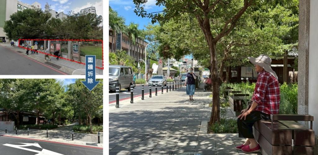 圖說:民權路X成功路藝文生活通學步道─拆除圍牆開闊整體視覺及景觀空間。