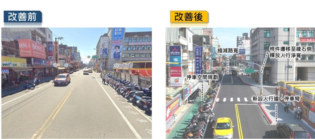 另外,都市發展局「民權路X成功路藝文生活通學步道」成功連結桃園區中正路、中山路與騰空路廊,整合新舊城區,透過人行道實體化與家長接送區規劃,大幅提升學童通行安全。此外,更將徒步空間提升為帶狀廣場,開闊整體視覺及景觀空間,並於步道沿線增設座椅,提供民眾舒適的散步休憩空間;住宅發展處「桃園市景福宮周邊道路及人行道改善工程」則結合舊城再生計畫及特色老屋立面改造,透過路口人行道外推、完善路緣斜坡,並設置車阻與行人專用時相,建構全齡化無障礙、安全暢行的人行環境,不僅優化都市景觀,更有效復甦都市機能。此外,中壢區公所「桃園市中壢區中大路道路及人行環境改善工程」藉由道路空間重整,縮減車道寬度並規劃合理停車位,將空間重新分配予行人與綠帶,並帶入道路工程全生命週期的養護整建思維;蘆竹區公所的「蘆竹區錦興國小周邊通學步道改善工程」優化校園周邊設施,改善轉角停等區等空間配置,設置連續綠帶,塑造整體安全舒適的通學廊道。