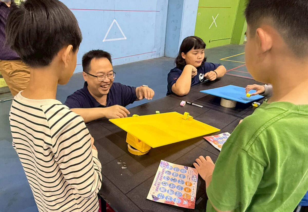 周中祺指出,「磁鐵怪獸」運用磁鐵南北極同性相斥、異性相吸的原理,設計出可自動開合的紙片裝置,讓學生直觀觀察磁力作用;「跳跳蛙」則透過橡皮筋拉伸儲存能量並釋放,使小青蛙彈跳起來,說明彈性位能轉換為動能的原理,與生活中的發條玩具及鬆緊帶應用相呼應;「小豬翻跟斗」藉由持續翻轉的玩具,引導學童理解重力、平衡與重心等概念,並連結日常可見的不倒翁現象。