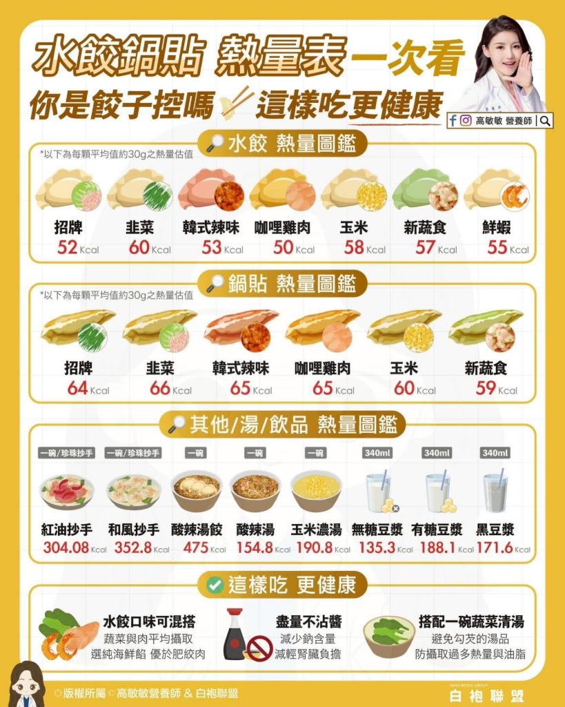 ▲ 水餃、鍋貼熱量大比拼,營養師授3招吃法不怕胖。(圖:高敏敏營養師 & 白袍聯盟)