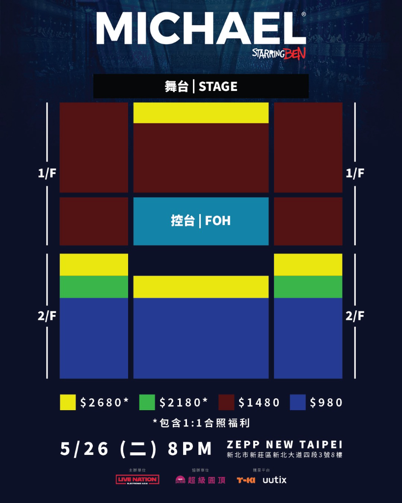 · 活動票價:NT$2680* / $2180* / $1480 / $980 (全場均為座位席)
