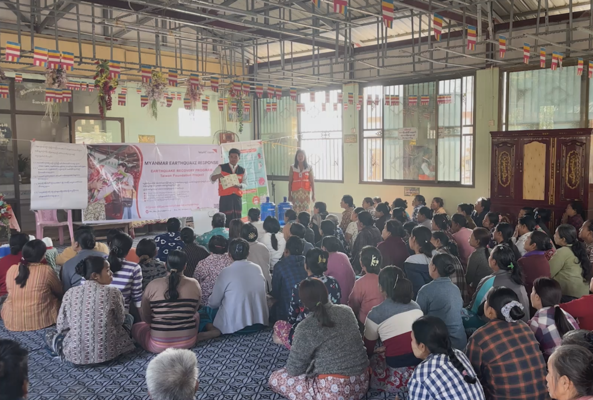 緬甸世界展望會會長歐文.勞埃德.吉勒根博士(Dr. Erwin Lloyd Guillergan)回想一年前這場天崩地裂的浩劫,表示:「我還記得那一天,緬甸人民正準備歡迎潑水節到來。然而,卻有3,800人不幸喪生於災難。街上沒有笑聲,只有塵土、悲傷與寂靜。」世界展望會和世界糧食計畫署及在地夥伴組織合力深入災區,幫助超過50萬位災民。透過糧食援助、醫療保健、教育學習、心理健康與心理社會支持,乾淨水暨衛生(修復受破壞的水井、水塔或廁所等)推動弱勢家庭復原工作,更提供6,500受災戶及小型企業復甦貸款,幫助災後復甦和重獲生計,來自台灣的支援,始終參與其中。