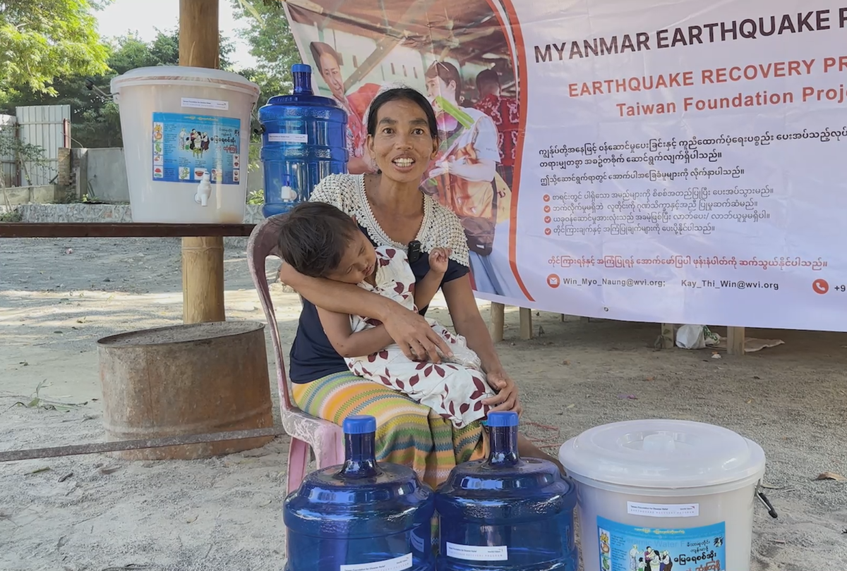 一位曼德勒的受災婦女欽欽(Khin Khin)抱著孩子說:「世界展望會提供陶瓷濾水器和水瓶,家裡可以喝到更安全的乾淨水,我們深深感謝世界展望會和捐款人的愛心。」在曼德勒(瓦城)許多婦女以縫紉為生,但縫紉機台多半在強震中毀壞。一戶受災婦女萊萊(Lai Lai)表示,自己本來是領日薪的紡織廠女工,地震造成失業和收入中斷,住家也因此毀損,不得不搬到臨時居所一陣子。「感謝世界展望會的現金補助,讓我能購買一台(二手的)紗線整經機。」萊萊以前每日做工領一萬緬幣(換算約臺幣153塊),在家裡接單生意變好,每天可以多賺五千塊,有能力負擔孩子的學費。緬甸世界展望會表示,這一年台灣幫助了7,000位災民直接受益(其中有半數是婦女和兒童),還有465戶家庭和婦女「萊萊」一樣受益於現金補助,重新養家糊口,對家庭和孩子意義重大。