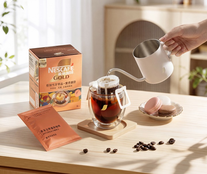 ▲雀巢金牌濾掛咖啡將繁瑣的手沖流程濃縮在一撕一拉之間,讓精品級咖啡的細膩美學真正走入日常生活。