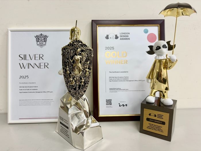 高灘處長黃裕斌表示,八里城市沙雕展持續創新精進,113年首次參加國際設計競賽,即榮獲MUSE設計獎、TITAN設計獎及倫敦設計獎等共4座銀獎,114年更進一步摘下金獎殊榮,顯示策展與創作實力逐年提升。藝術家運用細膩工法,將平凡沙礫轉化為具震撼力的藝術作品,讓八里左岸兼具自然景觀與人文藝術,成為國內外旅客造訪的重要據點。