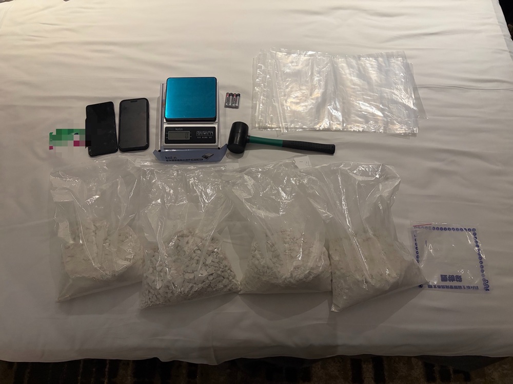警方表示,專案小組等時機成熟,在馬國男子外出時上前攔查,針對男子下榻房間實施搜索,當場查獲海洛因4袋總重約4公斤、手機、磅秤及錘子等物。後續再循線查獲前來取貨的台籍邱姓犯嫌。專案小組也擴大追緝,掌握馬國籍女子行蹤,在台北市區,成功將她拘提到案。